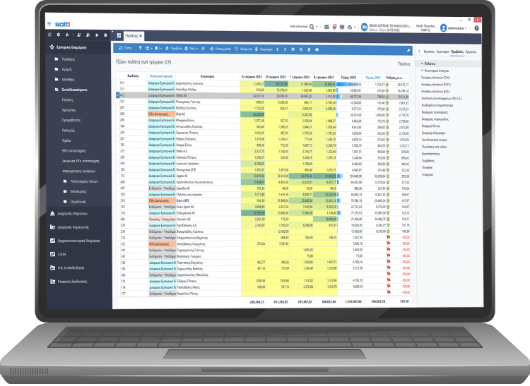 Συναλλασσόμενοι (Πελάτες, Προμηθευτές, Χρεώστες, Πιστωτές), Αγορές, Πωλήσεις, Διαχείριση Λιανικής, Πολιτικές Πιστότητας Πελατών, Παρακολούθηση Πωλητών & Εισπρακτόρων, Διεθνείς Συναλλαγές (Ξένο Νόμισμα), Κοστολόγηση Εισαγωγών – Εξαγωγών, Διαχείριση Πολλαπλών Business Units, Τιμολογιακές Πολιτικές, Πιστωτικές Πολιτικές, Μέσα & Γεωγραφικά Σημεία, Ενοποιημένες Οικονομικές Καταστάσεις, Διαχείριση Ομάδων Εταιρειών, Διαχείριση Εγκρίσεων, Εγκαταστάσεις & Συμβάσεις, Διασύνδεση με υπηρεσία ηλεκτρονικής τιμολόγησης EINVOICING